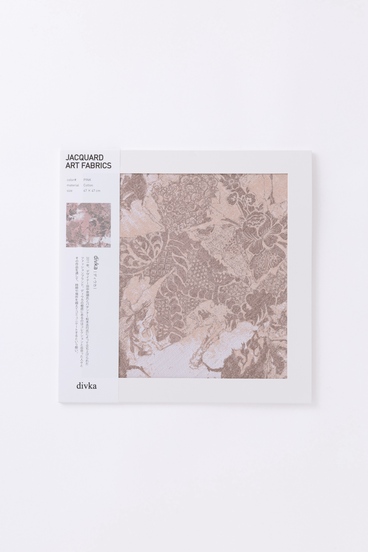 ジャカードアートファブリックは約48cm×約48cmのハンカチサイズで小さめのスカーフとして活用したり、お弁当箱をつつんでみたり…と幅広く活用ができるアイテムです。