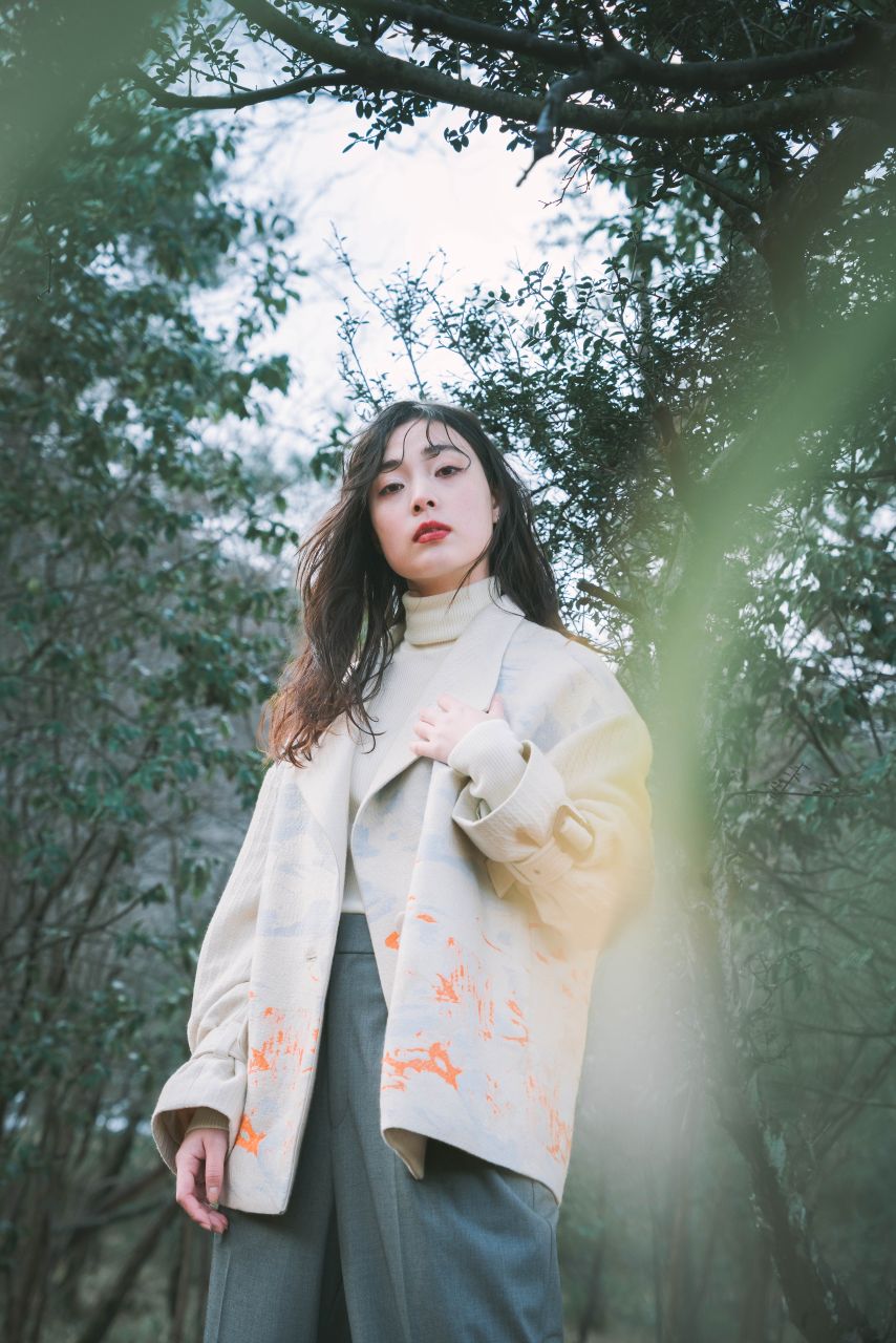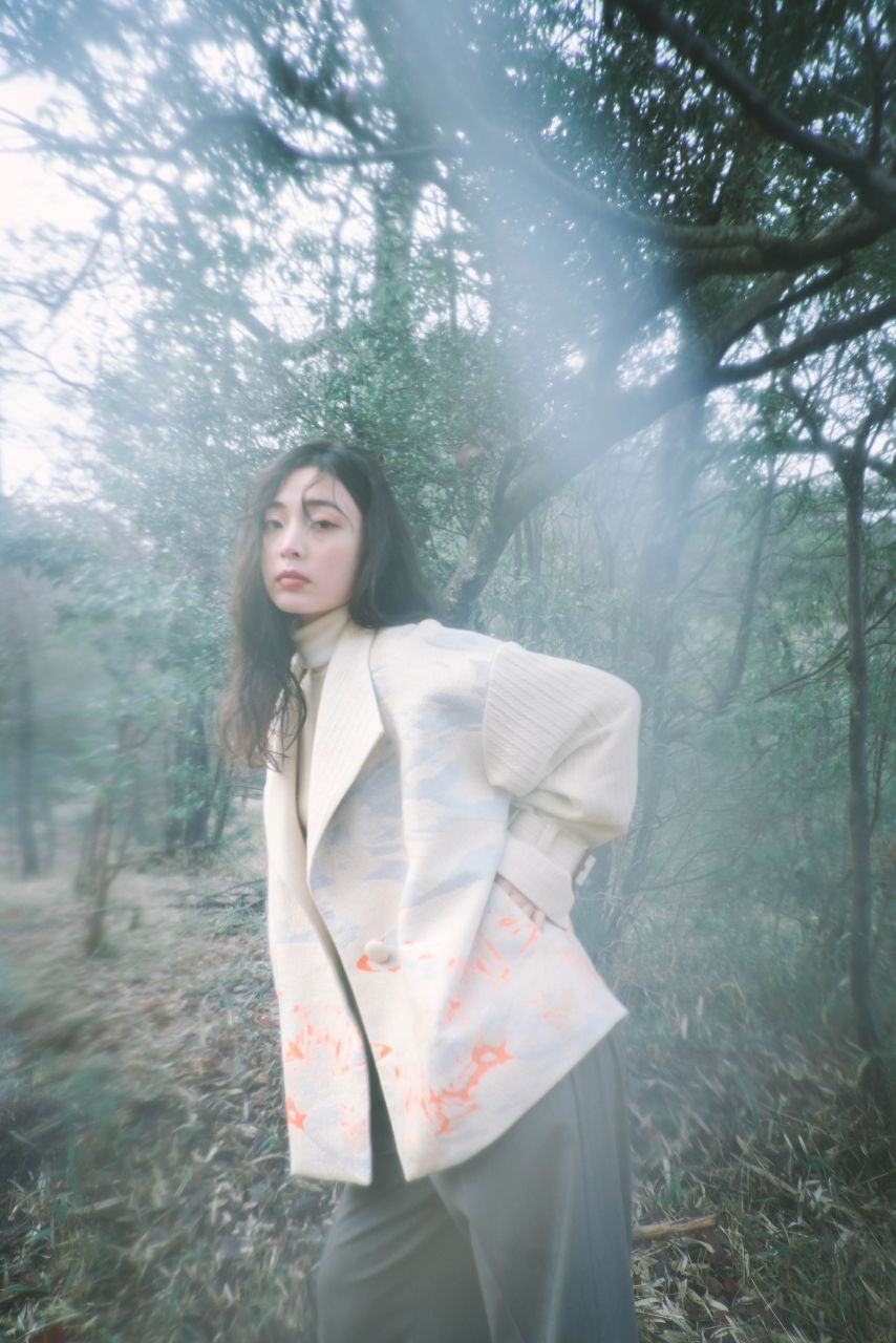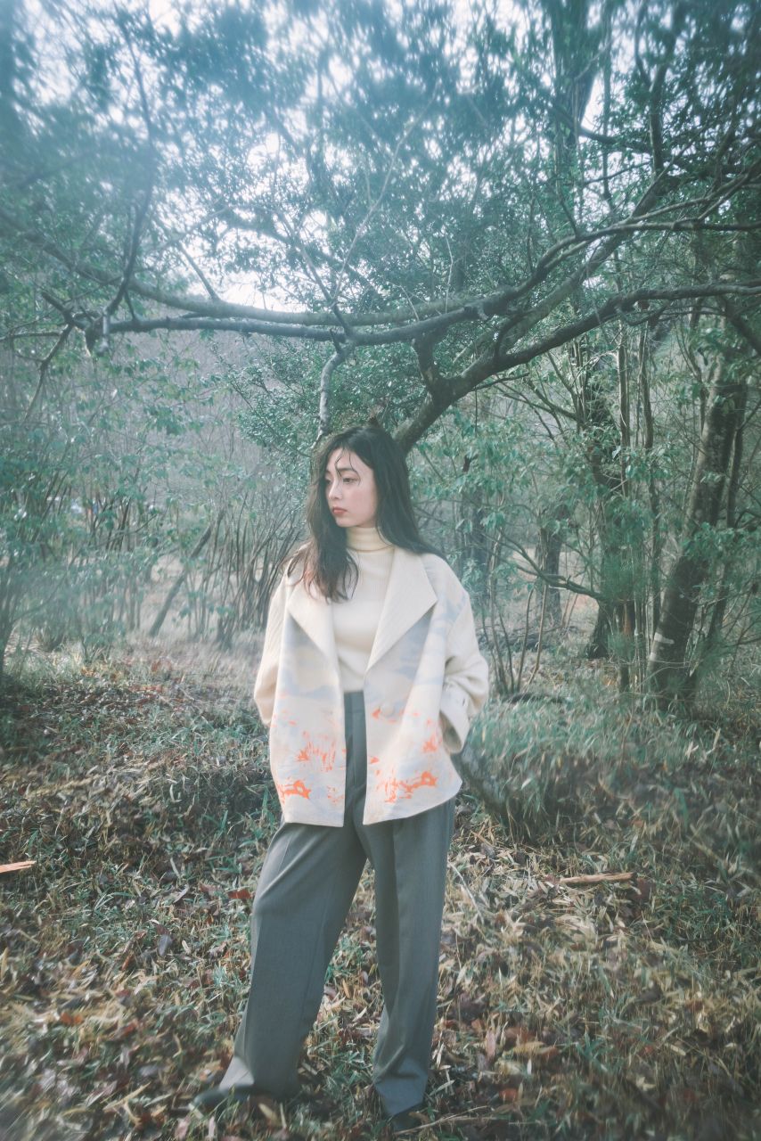 綿とウールを使用し、空に向かって溶けていくような雰囲気をグラデーションで表現しています。