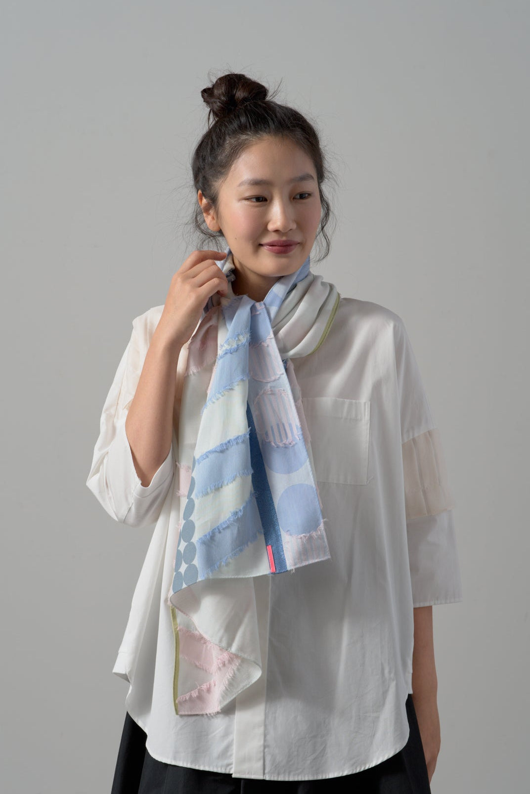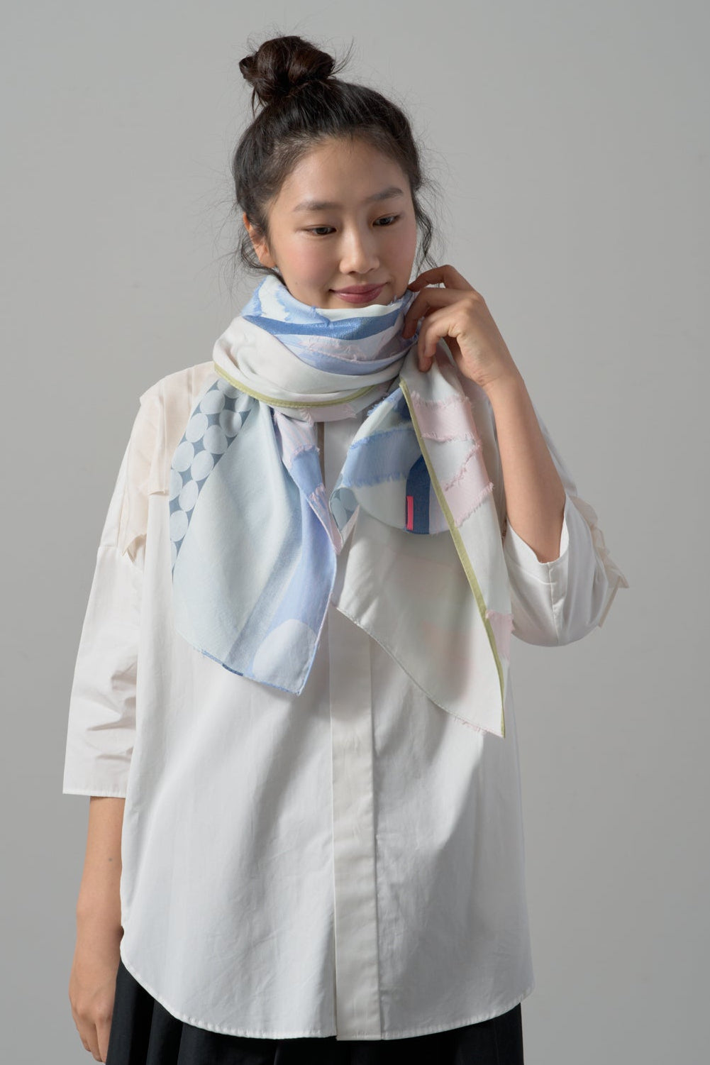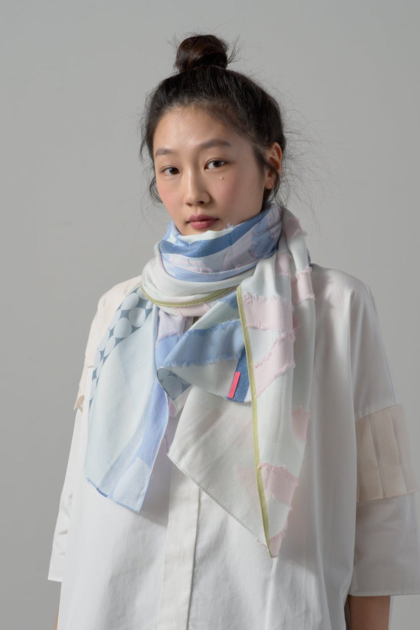 上質なキュプラの光沢感と柔らかなコットンがミックスされており、活力ある華やかさを演出してくれるストールになっています。