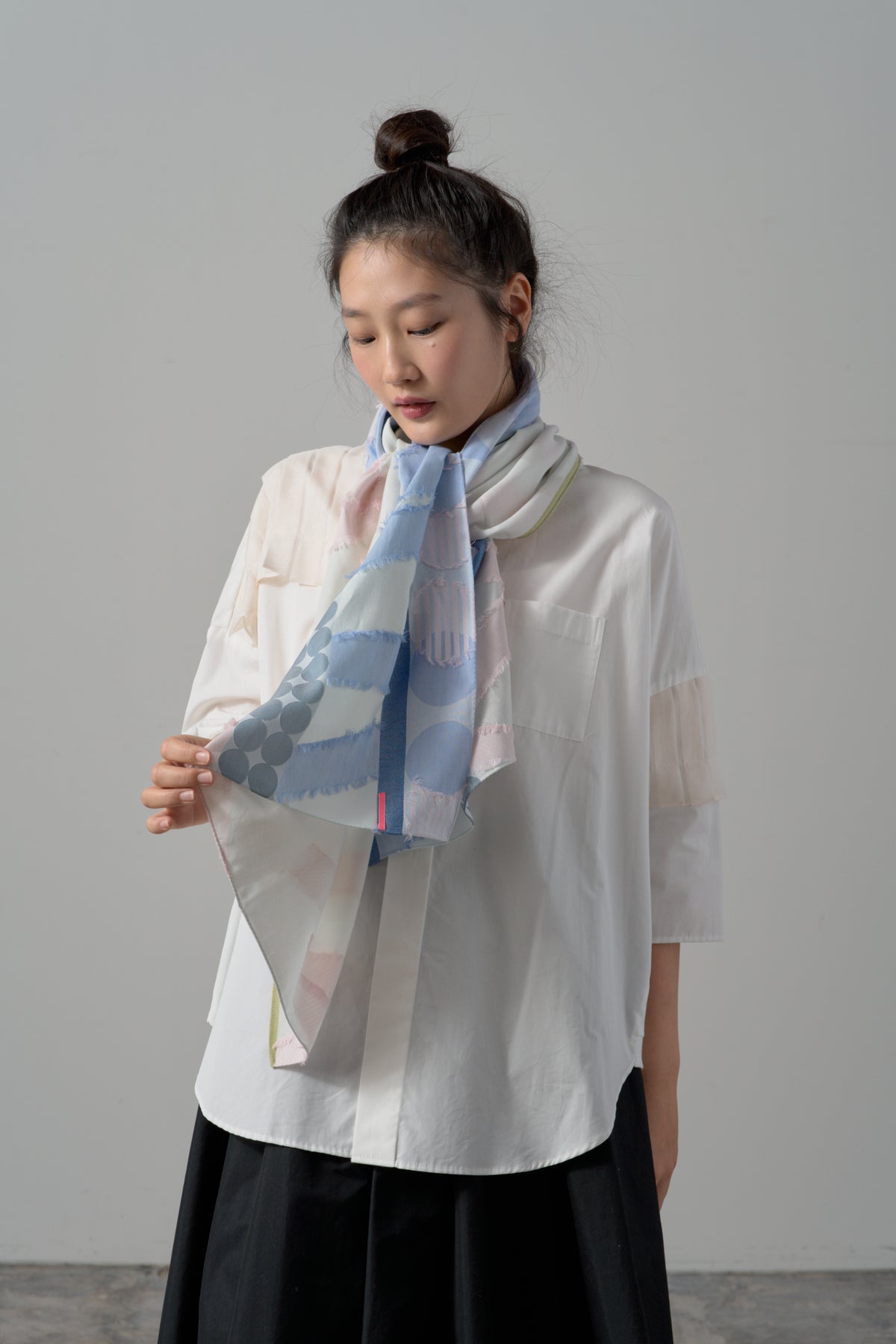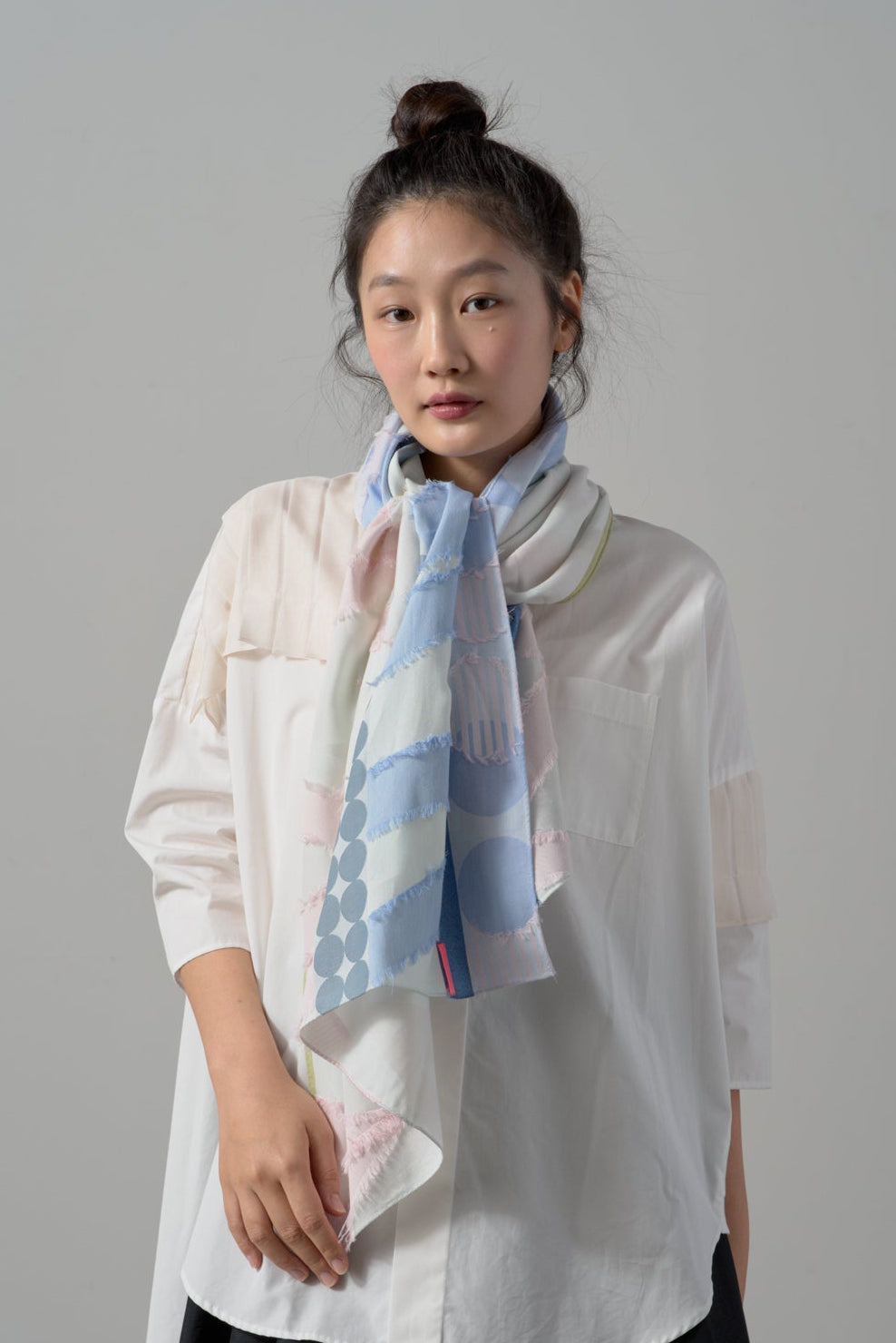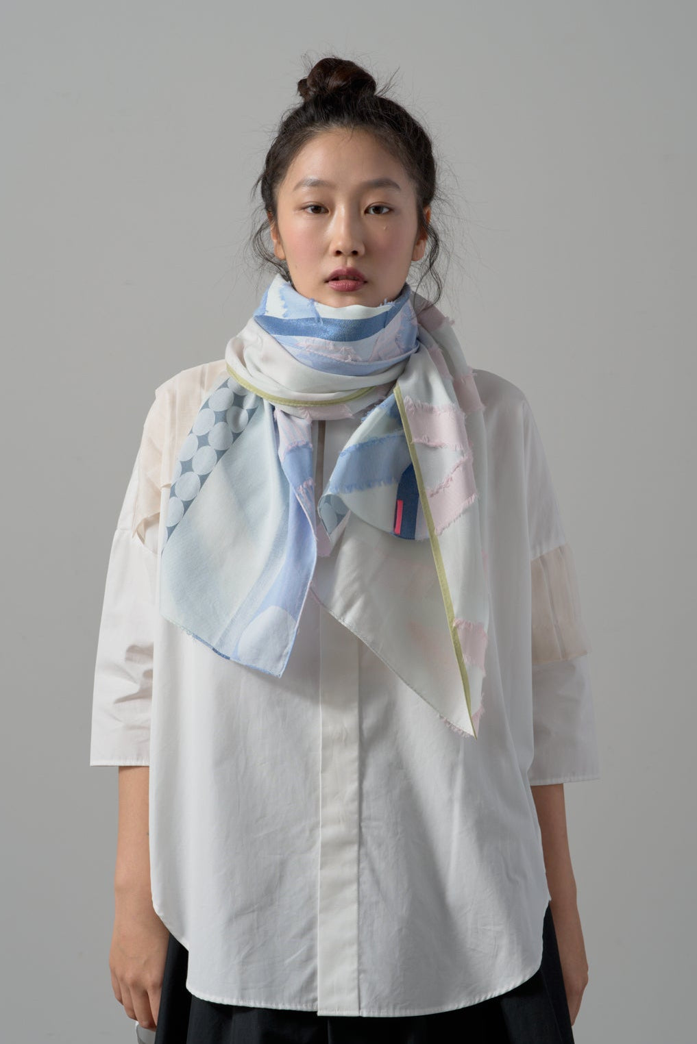 上質なキュプラの光沢感と柔らかなコットンがミックスされており、活力ある華やかさを演出してくれるストールになっています。