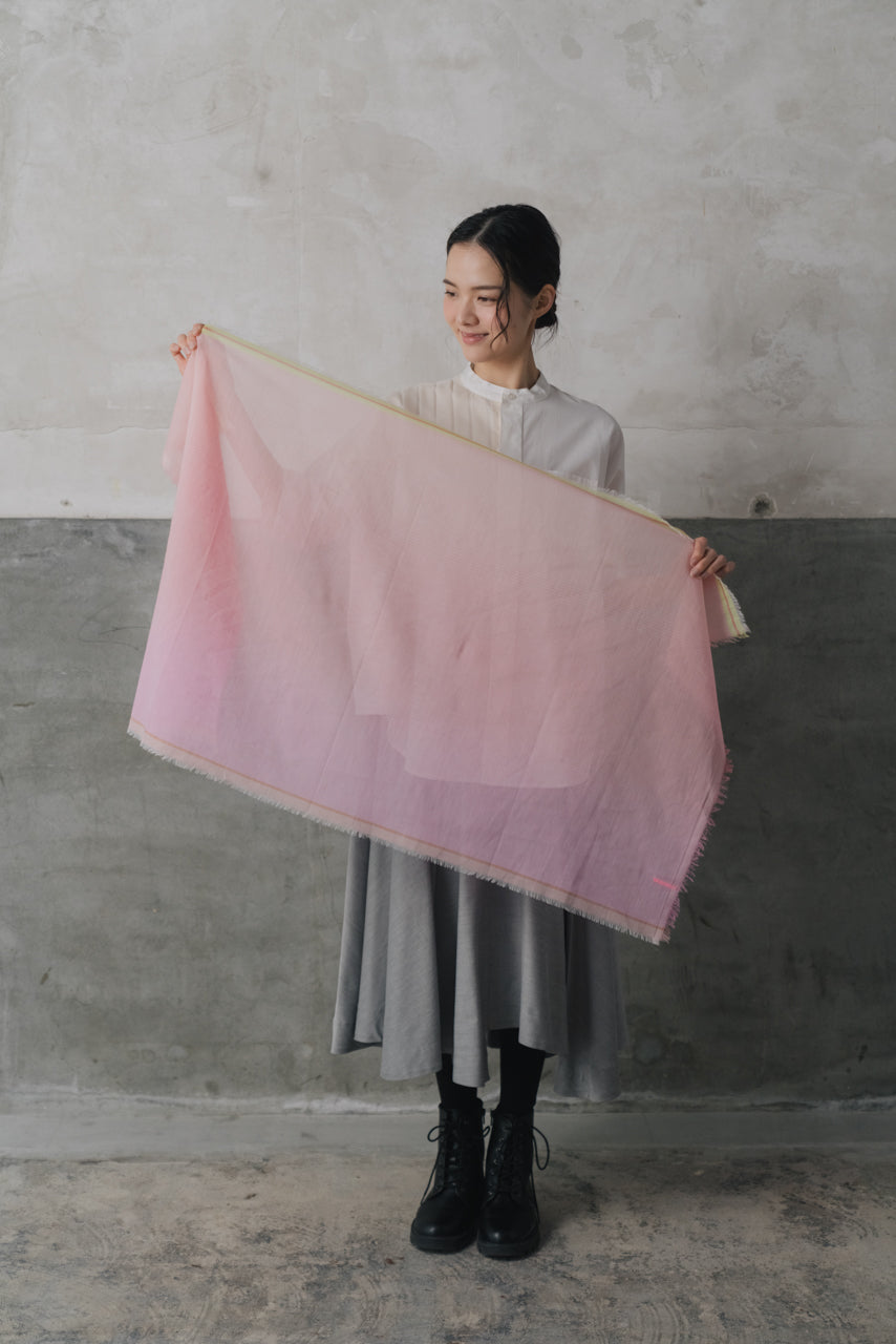 上質なキュプラの光沢感と柔らかなコットンがミックスされており、活力ある華やかさを演出してくれるストール。また、首に巻くだけではなくヘアバンドのように頭に巻いてご使用していただくことも可能なアイテムになっています。ご家庭で洗濯・アイロンなどの手入れも可能なアイテムです。
