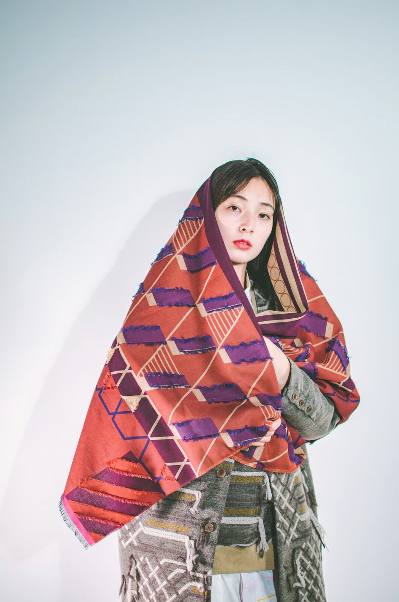 < TEXTILE > 視線の遠く先に連なってる山々や、川の様子をデザインした“KESHIKI”(ケシキ)。 異なる質感のウール糸を使用し、カットされているポイントカラーがアクセントです。