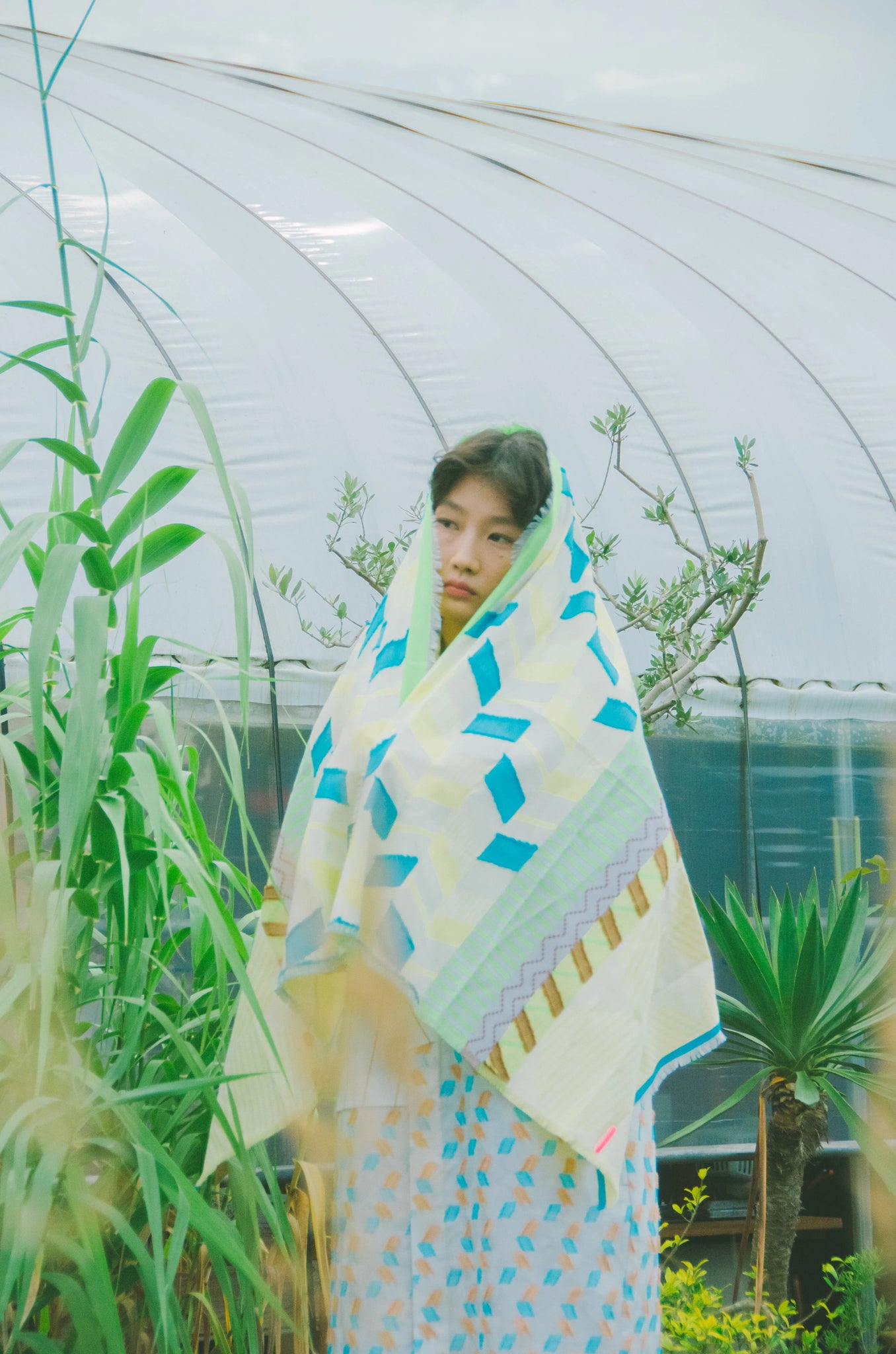 < TEXTILE > 視線の遠く先に連なってる山々や、川の様子をデザインした“KESHIKI”(ケシキ)。 異なる質感のウール糸を使用し、カットされているポイントカラーがアクセントです。