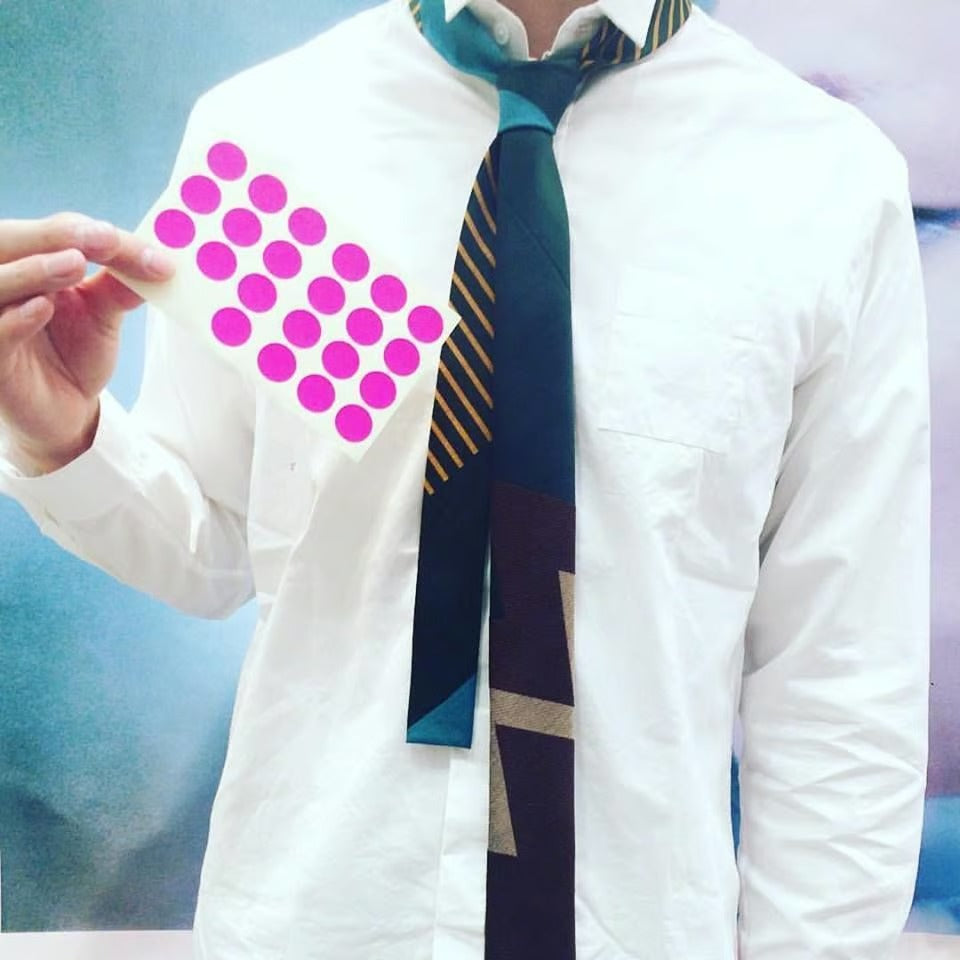 リボンのような、ネクタイのような。細くて長いその上に、あらゆるPOLSテキスタイルのテクニックをちりばめた、「ミミクリタイ」。