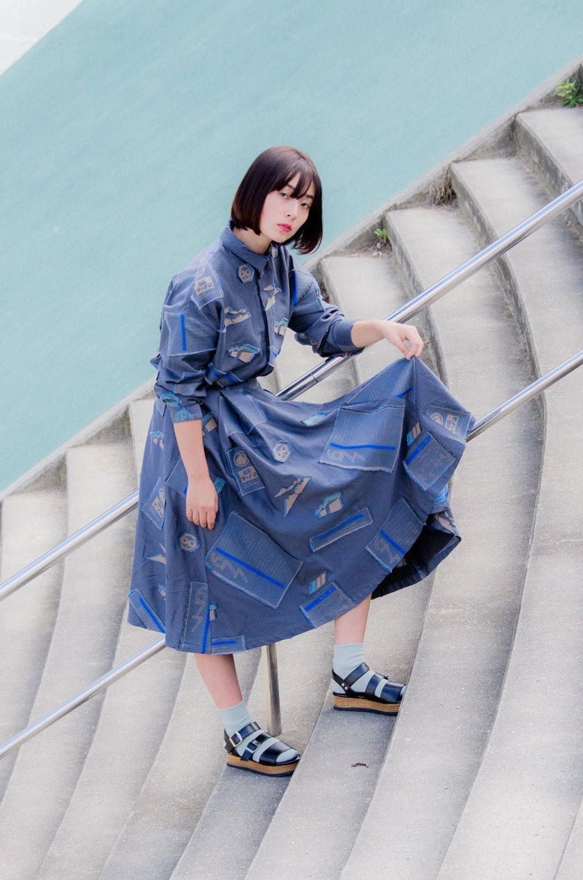 同じ柄のデニム素材では、モノクロフィルムのような郷愁感を表現しています。