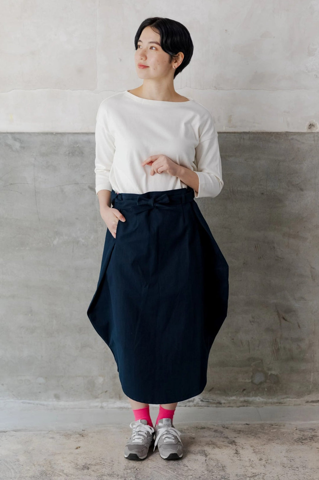 スカートの裾がアシンメトリーデザインに仕立て上げられたスカート。POLSのオリジナルデザインテキスタイルを全面にあしらいました。生地感がたっぷりあるパターンを使用しているため着用時のシルエットもふわりと柔らかさを感じられるのが特徴です。Tシャツやシャツウェアなどカジュアルな装いとの相性がバッチリです。
