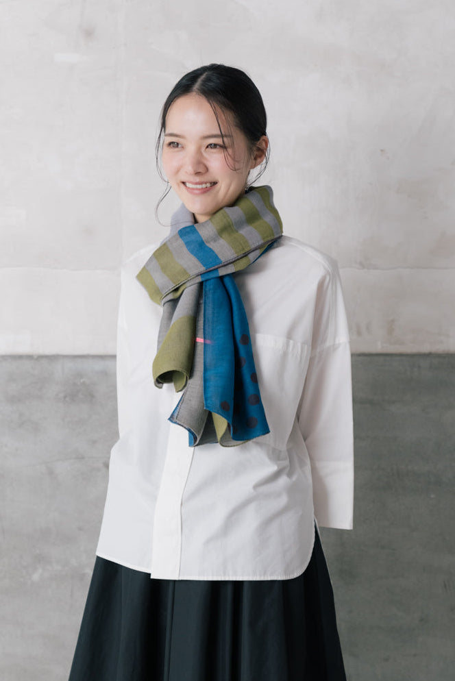 それぞれ、色合いやデザインが異なるため何通りもの見せ方ができるストールになります。