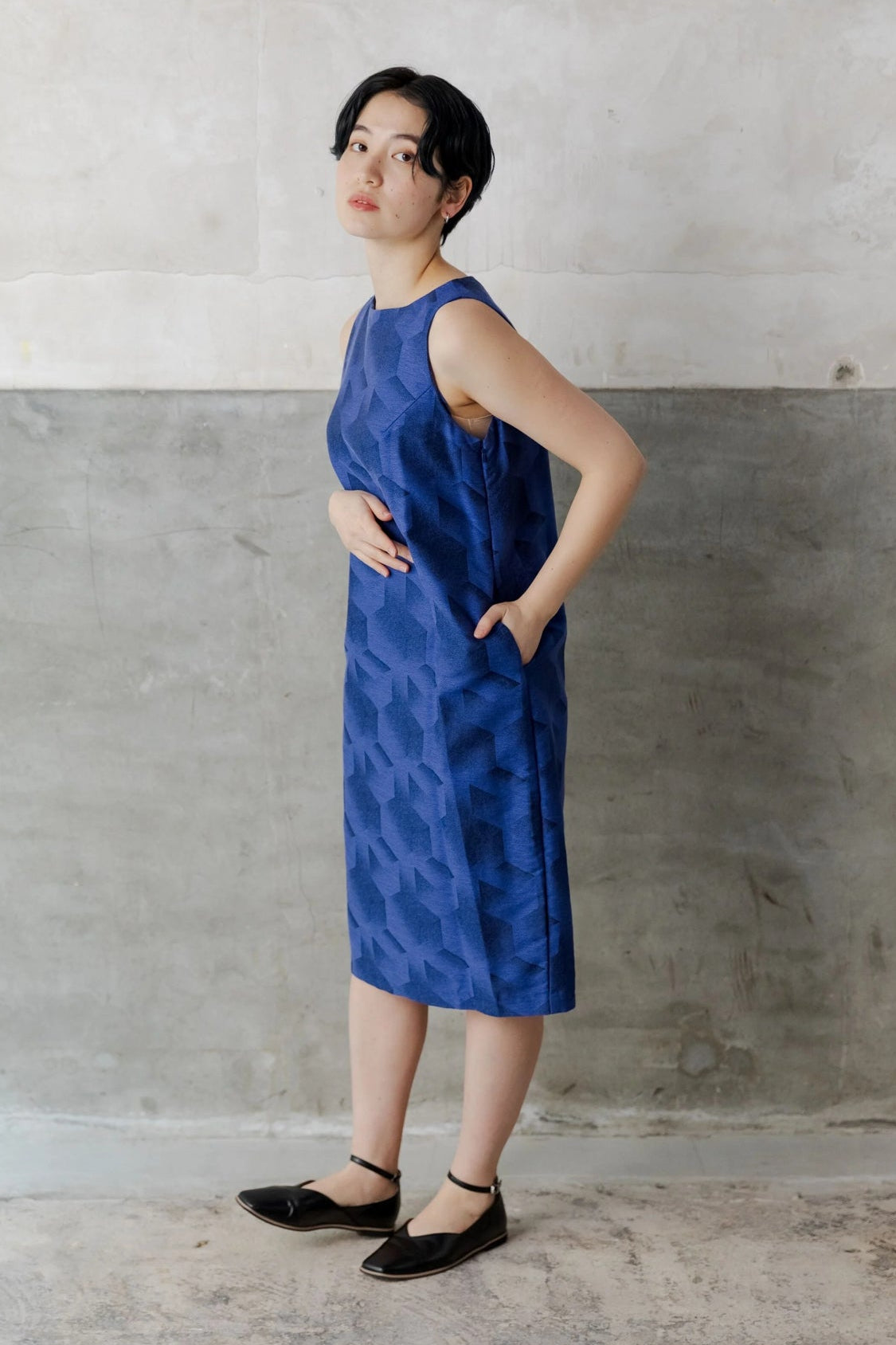 長い繊維を撚っているため艶感があるオーガニックコットン生地にオーガンジープリーツやリブ生地を組み合わせた異素材MIXのワンピース。