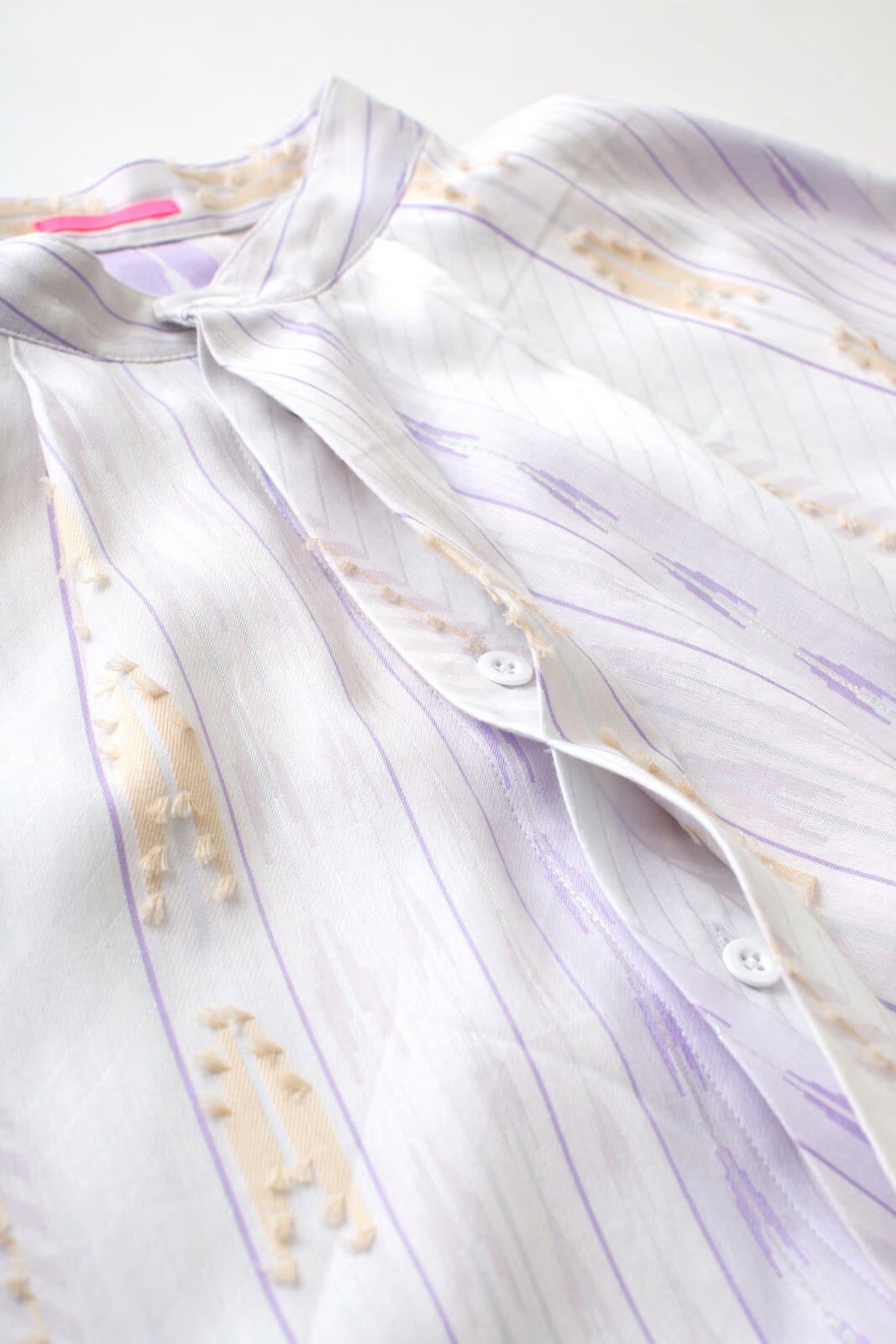 生地はシャツ地の様なハリ感がある生地のため、タックのラインやワンピース裾のラインをキレイに見せることができます。