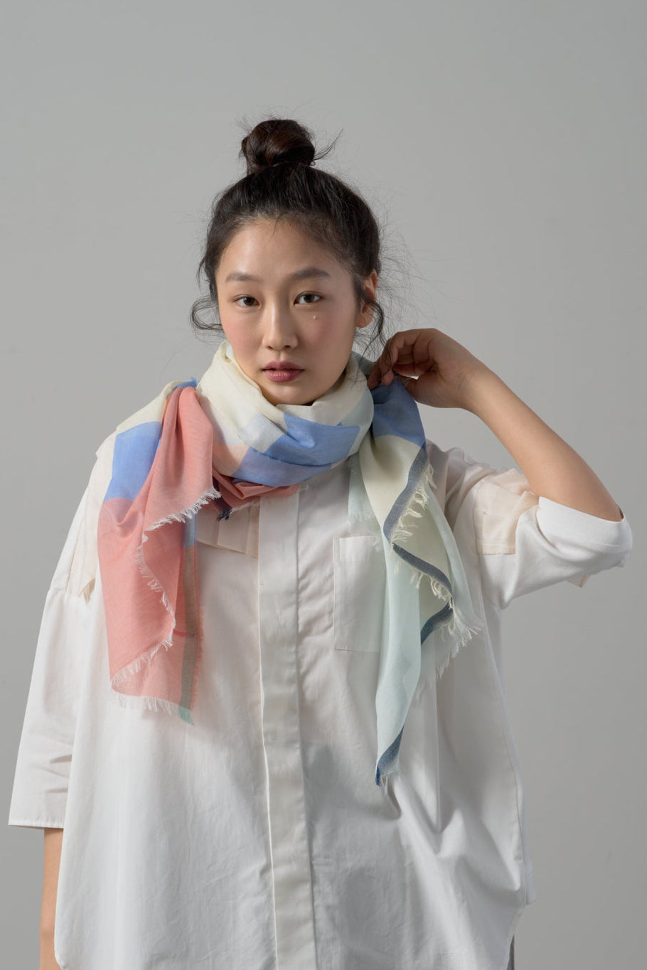 ふわりとした手触りが特徴で、織物の端にあたる耳部分には色糸を用いてアクセントになるデザインに仕上げました。