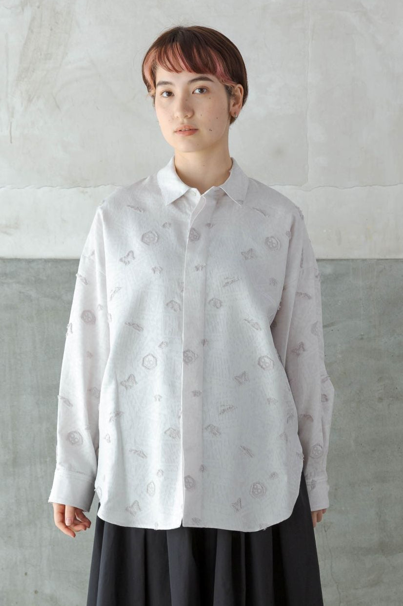 リネン素材より吸水性・速乾性に優れた和紙を使用することによって、日本の湿度の高い夏でも快適に過ごしやすいジャケットを作りました。アシンメトリーデザインの襟元やパイピングラインがポケットなどに入っているのがポイントです。