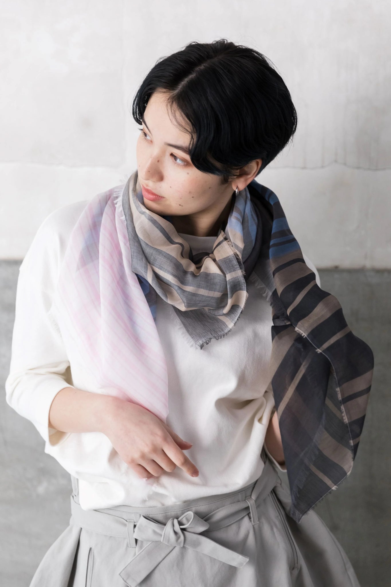 ふわりとした手触りが特徴で、織物の端にあたる耳部分には色糸を用いてアクセントになるデザインに仕上げました。