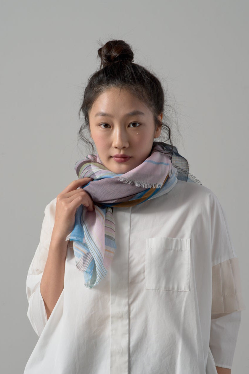 極細コットン播州織ストール Mサイズ col:マルチカラー ブルー(DBM)
