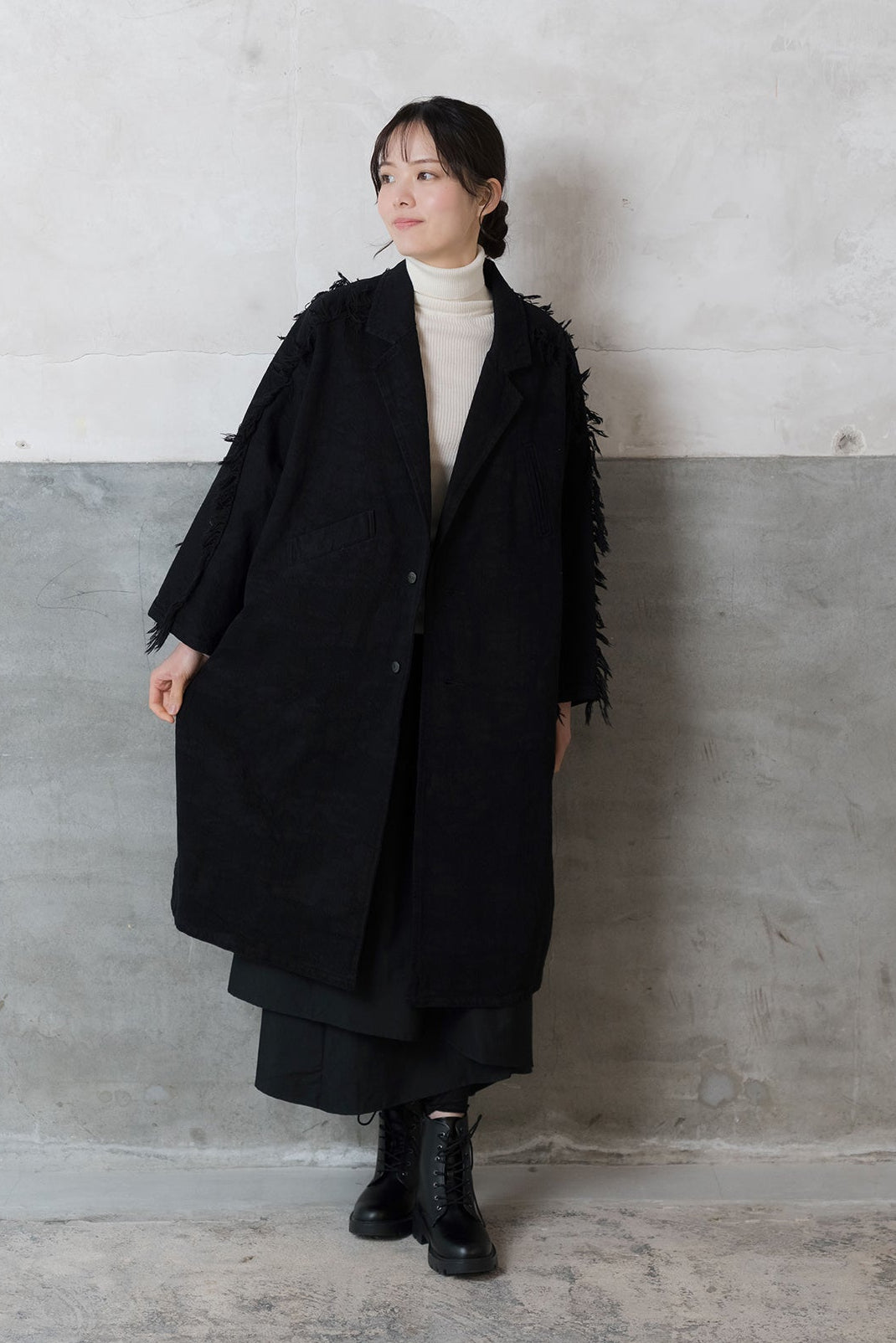 襟元が空いているのでこのコートと一緒にストールやマフラーを合わせたコーデもぜひ楽しんでください。