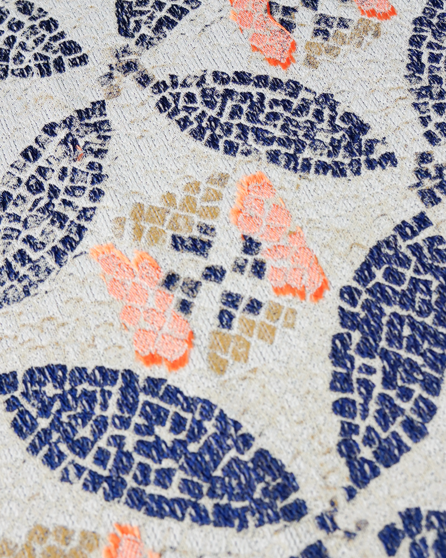 ジャカードアートファブリックは約47cm×約47cmのハンカチサイズで小さめのスカーフとして活用したり、お弁当箱をつつんでみたり…と幅広く活用ができるアイテムです。